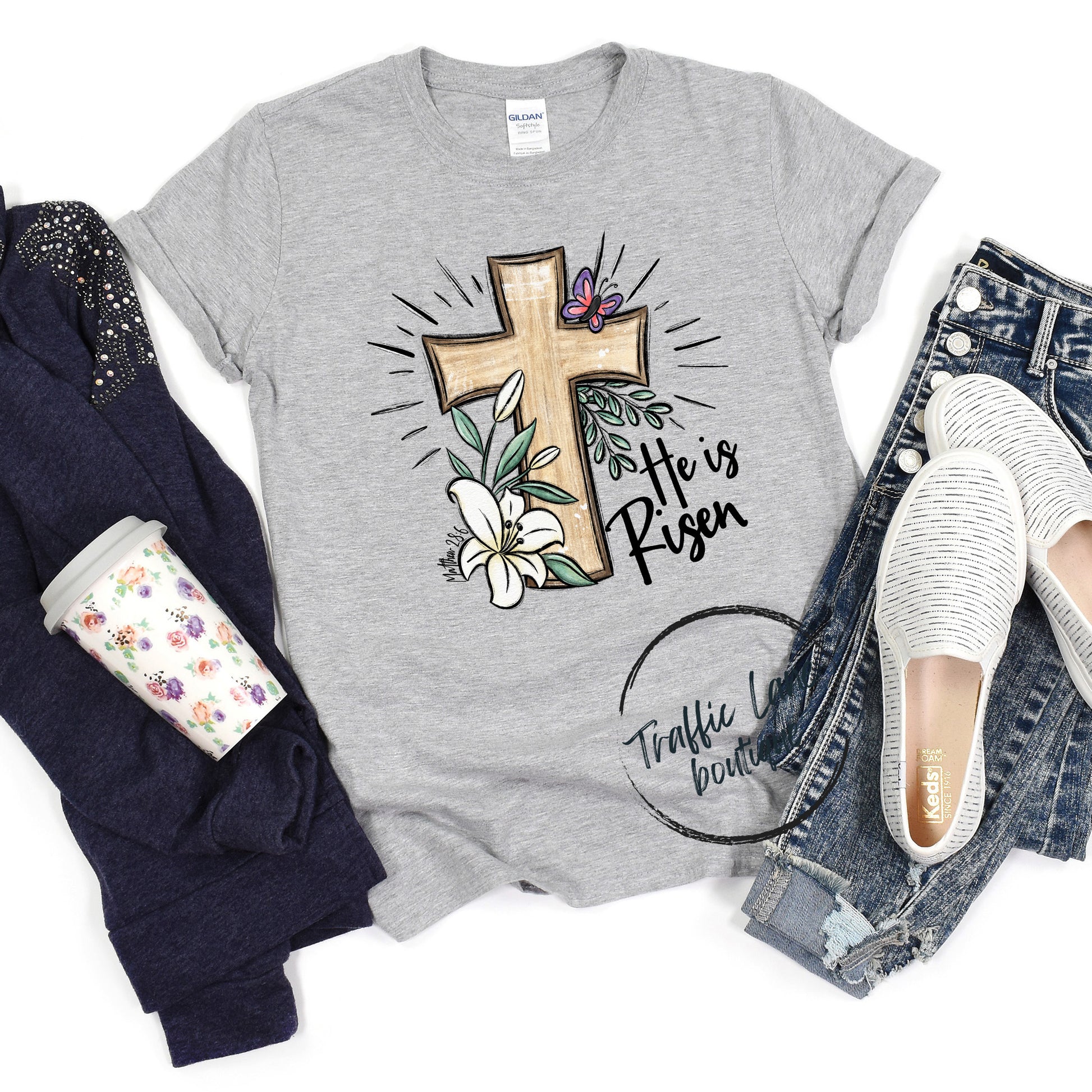 Rock your faith with this cheerful declaration of resurrection and renewal. This comfortable tee is ideal for spreading joy during Easter celebrations, religious gatherings, or whenever you want to express your spiritual side with a lighthearted flair. Soft, wearable, and bursting with positive energy, it's the perfect way to share your beliefs while keeping things fun and approachable.