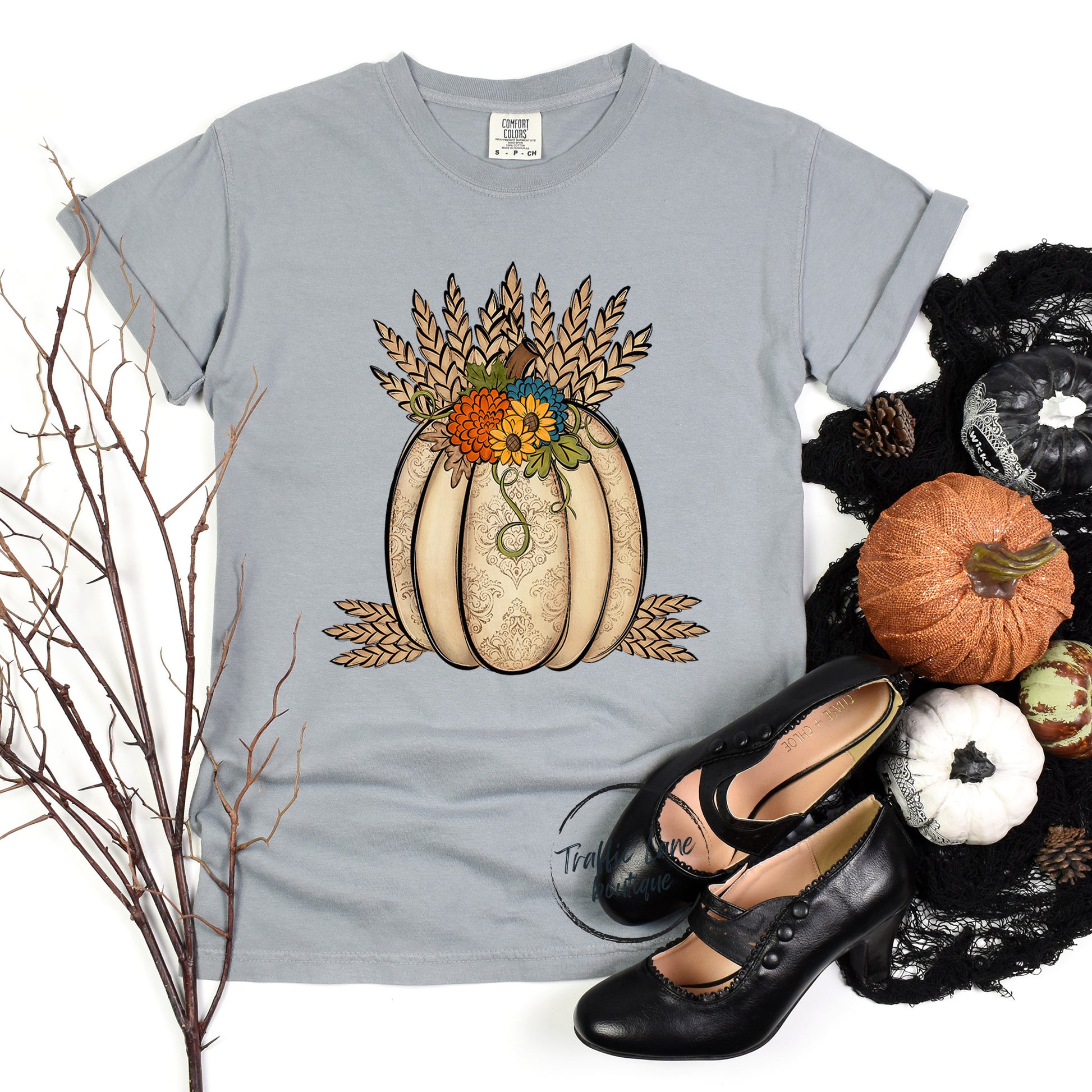 Pumpkin With Wheat shirt - cozy fall vibes, perfect for crisp days & lattes.