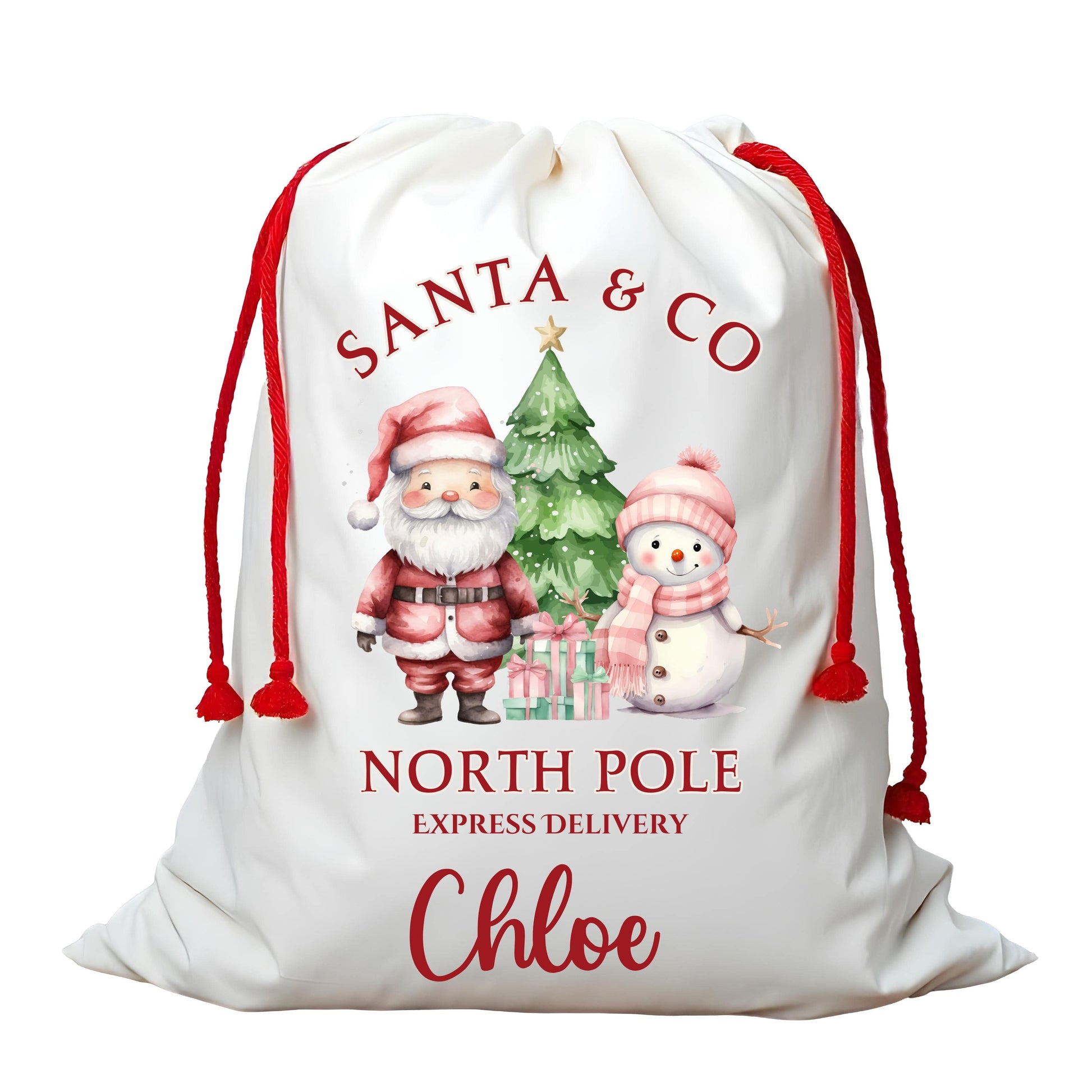 This cheerful Christmas sack brings festive cheer with its charming Santa and Snowman design. Crafted from durable cotton canvas and created using advanced DTF printing technology for vibrant, long-lasting colors. A delightful addition to your Christmas traditions!